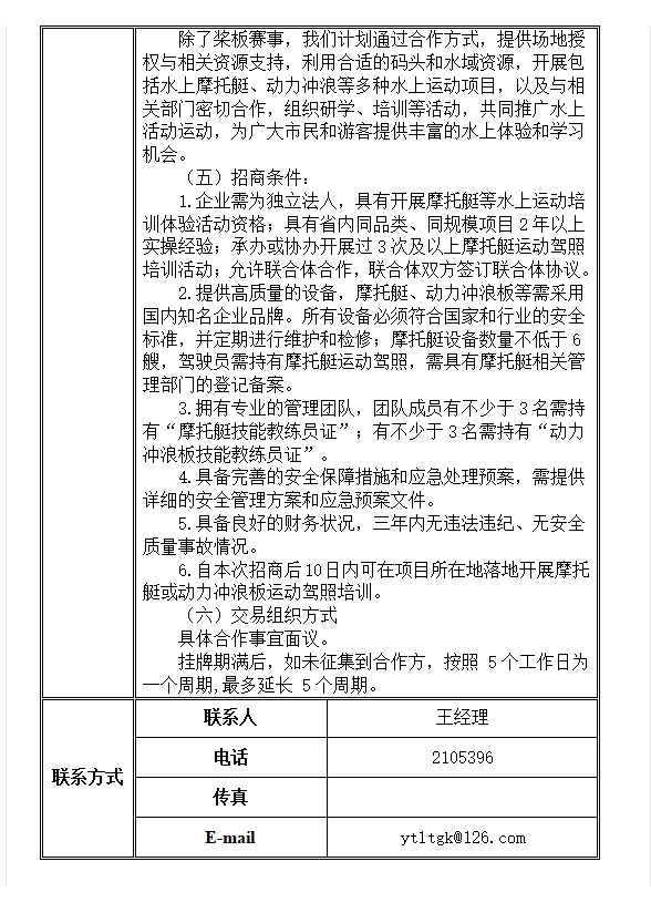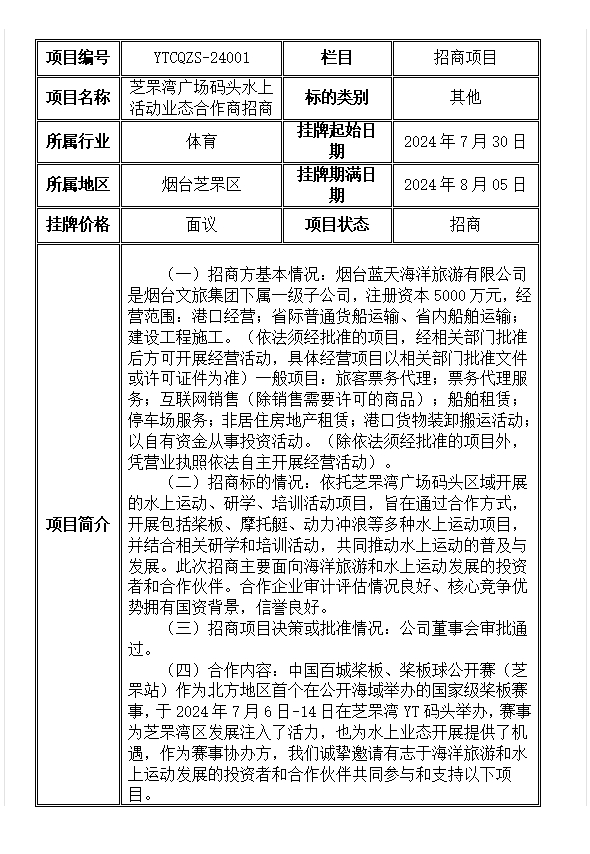 芝罘灣廣場(chǎng)碼頭水上活動(dòng)業(yè)態(tài)合作商招商