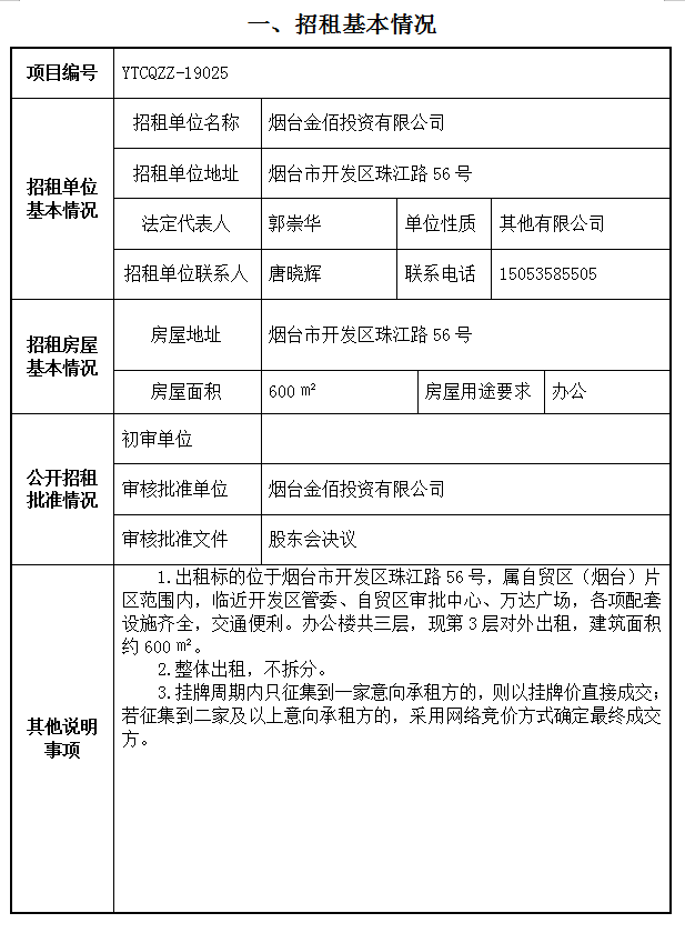 煙臺市開發(fā)區(qū)珠江路56號辦公樓第三層約600㎡租賃