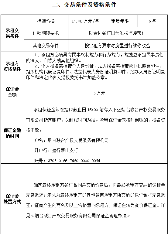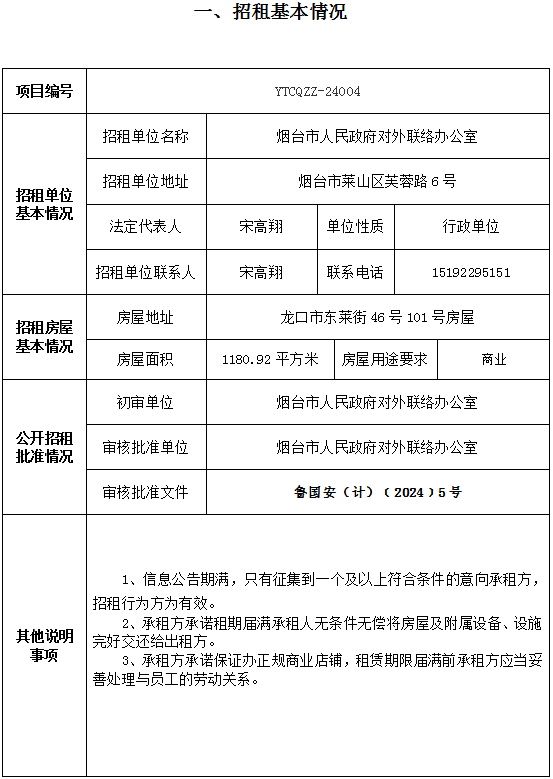 煙臺市南大街267號一樓東側(cè)門頭房招租公告
