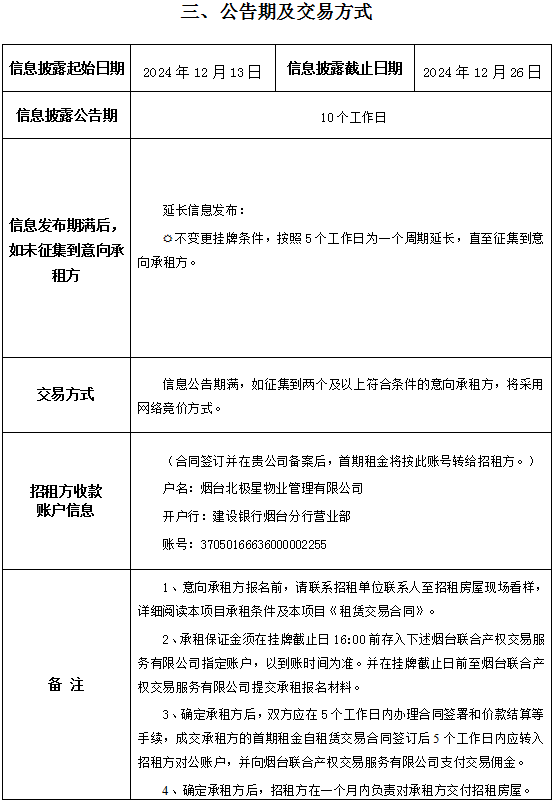 • 掛牌起止日期:2024年12月13日至2024年12月26日