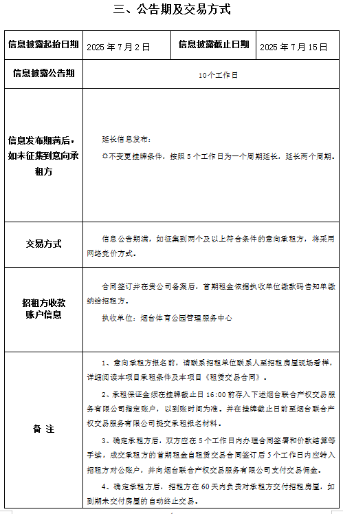 掛牌起止日期:2025年7月2日至2025年7月15日