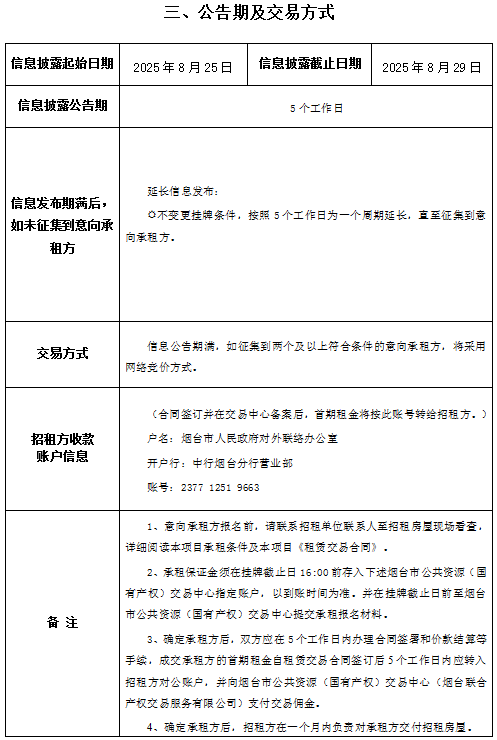 掛牌起止日期:2025年08月25日至2025年08月29日