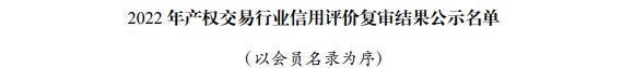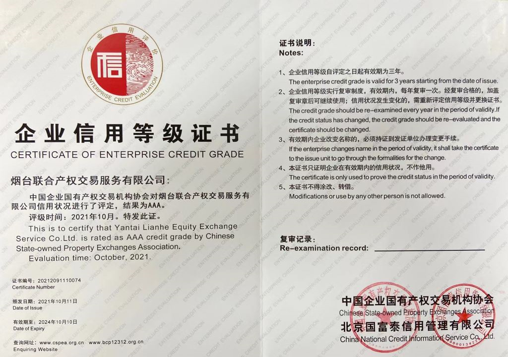2022年產(chǎn)權交易行業(yè)信用評價復審結果在全國行業(yè)信用公共服務平臺和中國產(chǎn)權網(wǎng)進行公示,煙臺聯(lián)合產(chǎn)權在協(xié)會信用評價復審中,繼續(xù)維持AAA級評定不變。